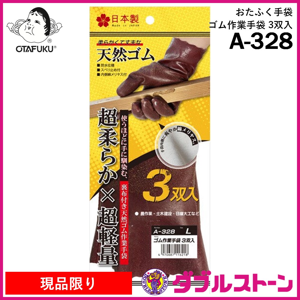 おたふく手袋 A-328 ゴム作業手袋 3双入 【現品限り】