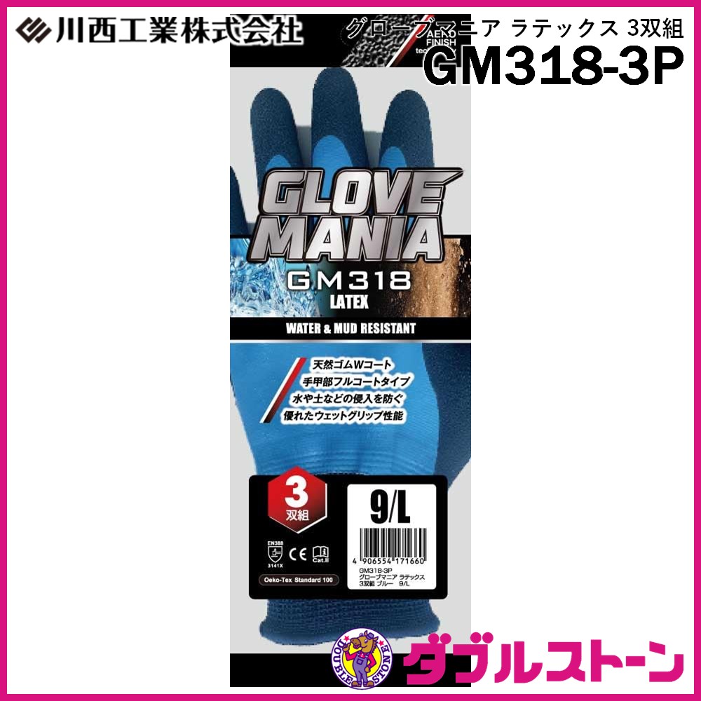 川西工業 GM318-3P 背抜き手袋 グローブマニア ラテックス 3双組