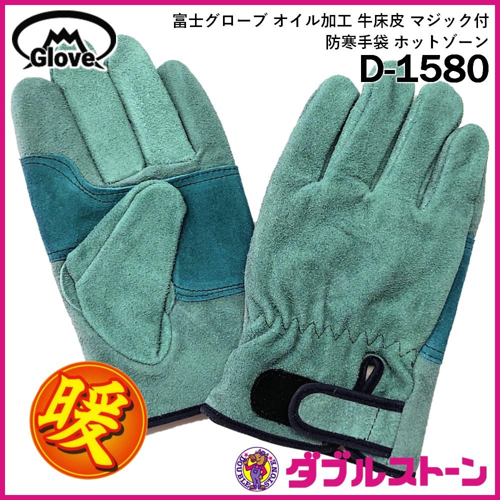 富士グローブ 防寒手袋 革手袋/皮手袋 オイル加工牛床皮 マジック付 ホットゾーン D-1580
