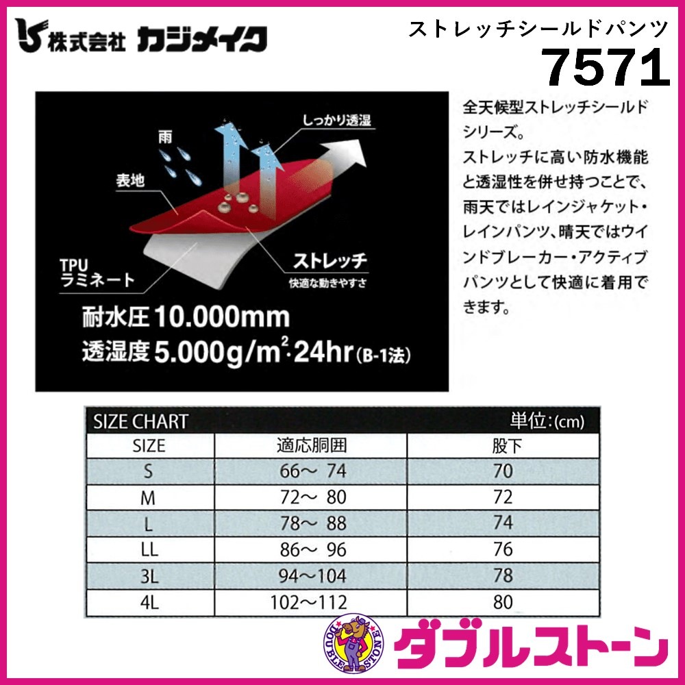 カジメイク 合羽/レインウェア ストレッチシールドパンツ 7571