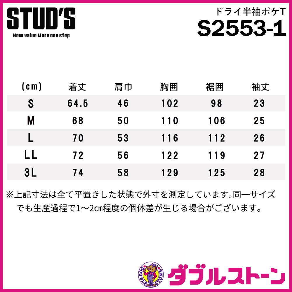 STUD'S ドライ半袖ポケT(シンプルデザイン) S2553-1 【ビッグシルエット】
